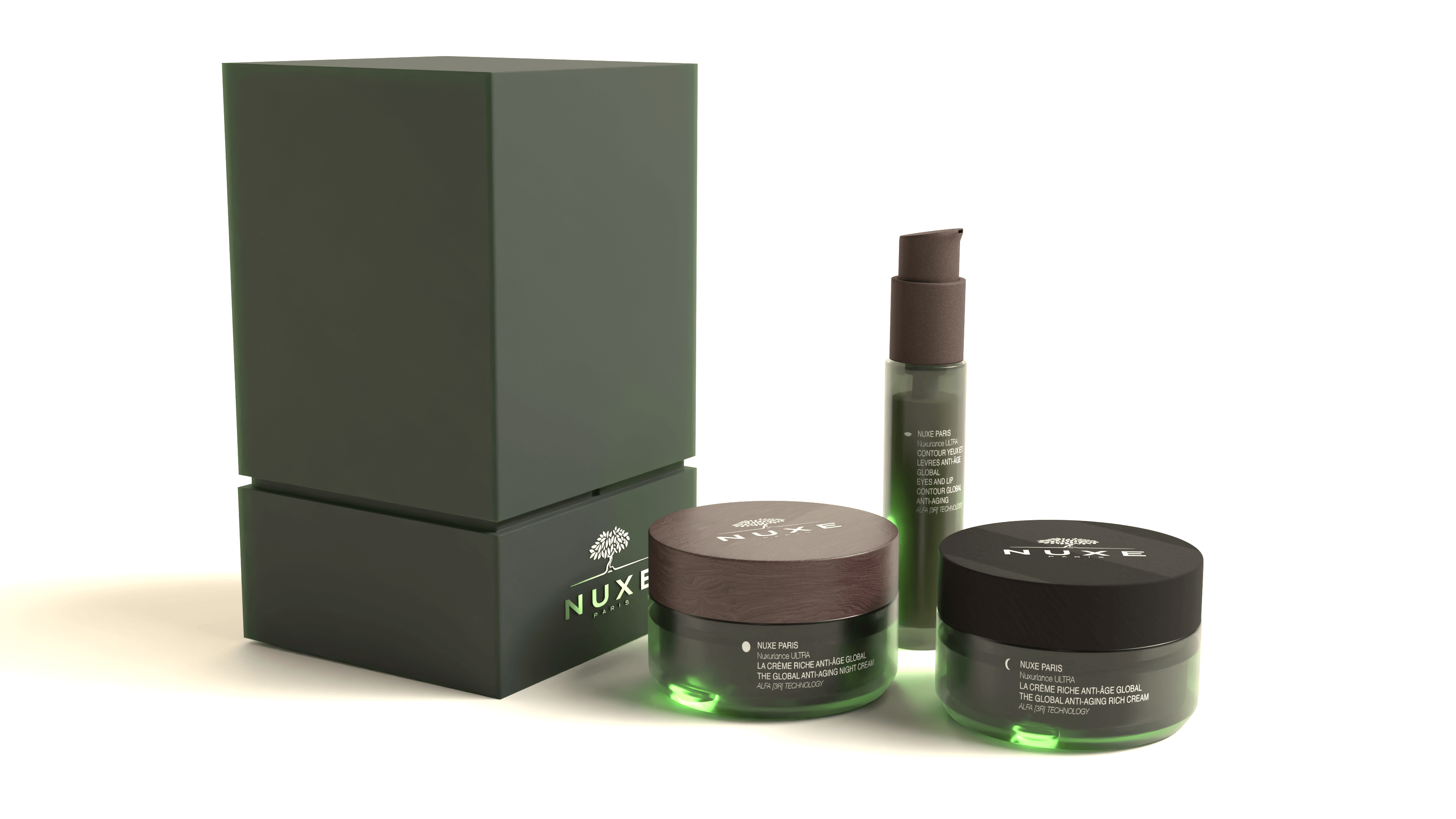 Rediseño de los productos anti-edad de la marca Nuxe y de su pack de viaje.
